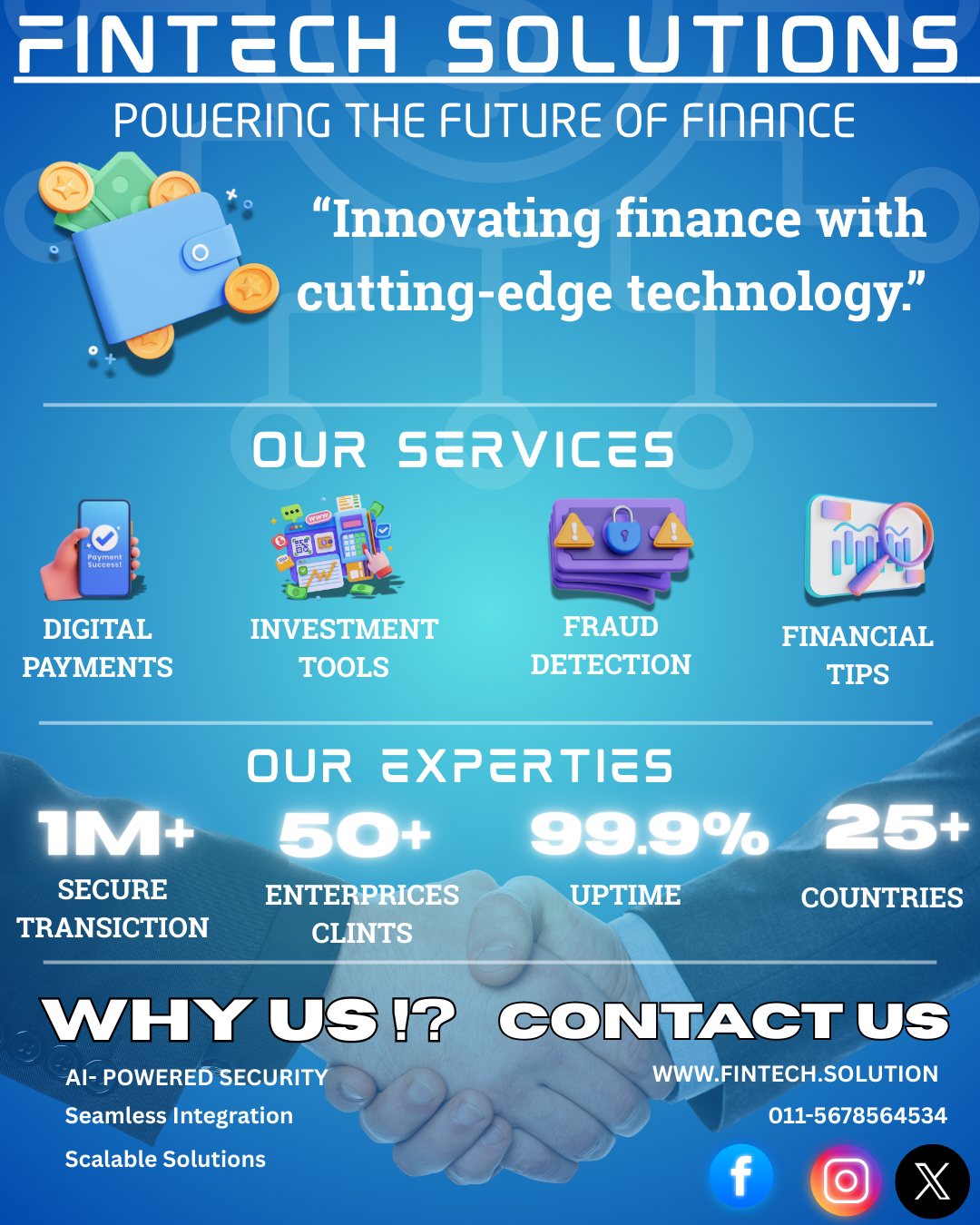 FinTech Solutions is a financial technology company offering modern, data-driven financial services to businesses and enterprises.