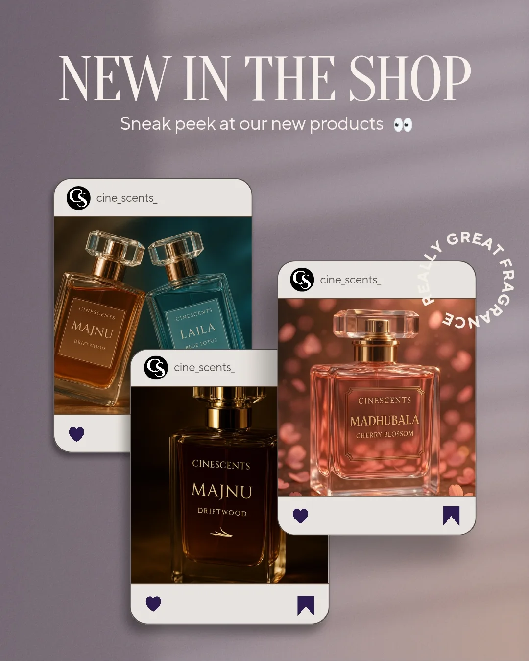 CINESCENTS is a creative perfume startup built around a unique Bollywood-inspired concept. Each fragrance is named after iconic Hindi cinema movies, and the scent profile, tone, and mood of every product matches the emotion of its movie name. As a new perfume brand, CINESCENTS wanted to attract a young, style-conscious audience that connects with cinema, emotions, and storytelling.